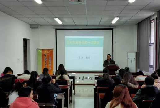周洲教授从自己的个人经历谈起,与同学们分享了自己读研读博的初衷,讲述了自己在求学过程中逐渐成长的历程。接着,他提出研究生阶段需要培养自己的科研素养,一方面对自己所研究的方向要深入了解,并且做到充满热情;另一方面,要勤于思考,敢于质疑,并擅于动手。随后,就“如何做好科研”这一主题,周教授提出以下建议:一,要学会与导师及时沟通,避免浪费过多时间;二,要与他人保持良好的关系,吸取他人的长处,善于与他人交流,不要闭门造车;三,多读文献,及时了解自己所涉及方向的最新动态,并把文献归类整理;四,一定要注意锻炼身体,健康的身体是做科研的基础,也是我们宝贵的财富。最后,周教授就如何搜索、下载、整理文献、如何选择投稿期刊等同学们关心的问题做了详细的回答。