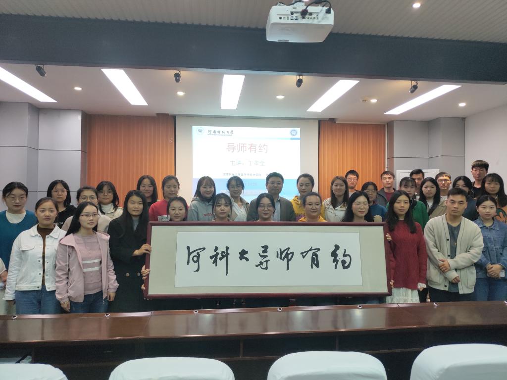 首先,丁孝全对读研期间同学们应掌握的专业知识做了系统的介绍,就“目标端正、自我控制、和谐相处、个性发展”四方面与在座研究生进行了深入交流,并鼓励研究生努力做到夯实基础、追踪热点、守正创新、全面发展。随后,他提出研究生阶段需要培养自己的科研素养,在科研选题上要选有价值的题目,在文献阅读时要正确处理精与博的关系,在科学创新上要将新知识与老方法结合,在论文撰写时要重视书面表达能力。最后,丁教授寄语研究生们要“目标端正、自我控制、和谐相处、个性发展”。