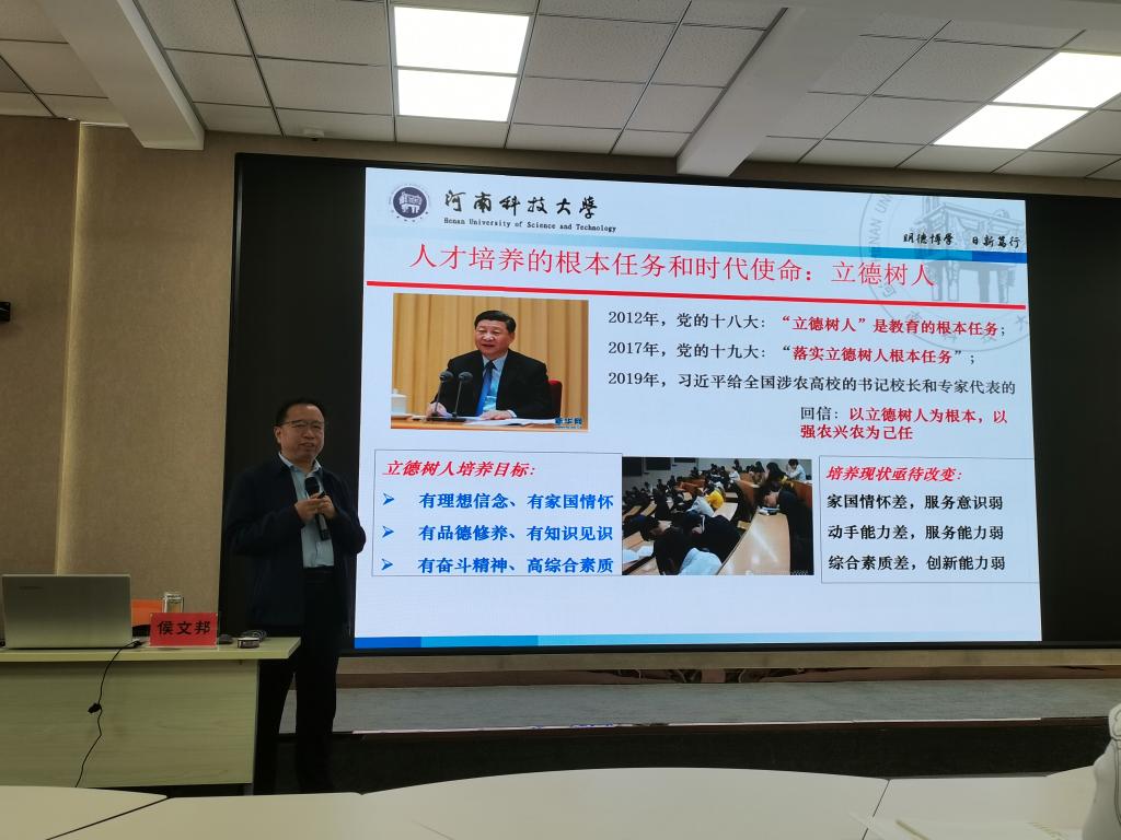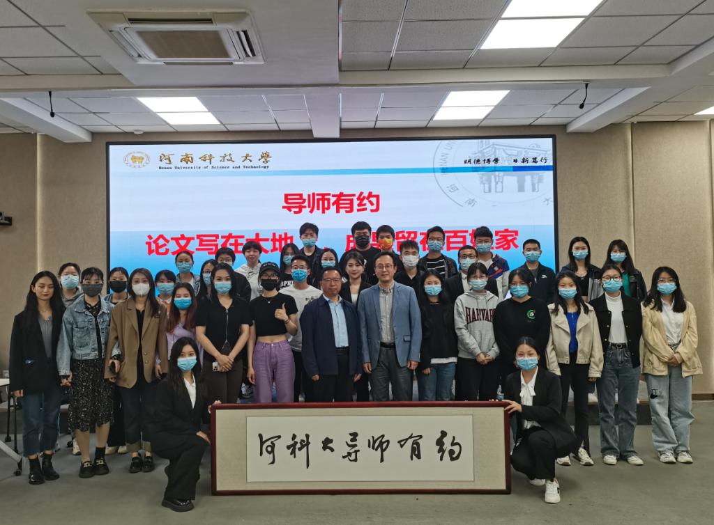 5月13日下午,由河南科技大学党委研究生工作部/研究生院主办的第105期“导师有约”在开元校区农医教学楼608室举行。本次活动邀请农学院/牡丹学院硕士研究生导师侯文邦教授与研究生面对面就“论文写在大地上,成果留在百姓家”进行了深入探讨与交流。农学院副院长宋鹏老师、党委研究生管理科科长王泽远老师参加此次活动,活动由管理学院2021级研究生刘佳钰主持。