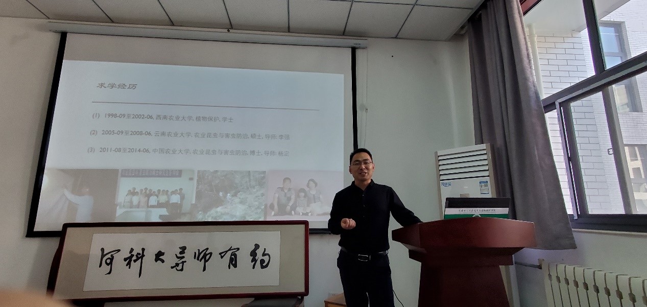 12月5日上午,由河南科技大学党委研究生工作部/研究生院主办、园艺与植物保护学院承办的第96期“导师有约”在河南科技大学开元校区农科三号楼331会议室举行。本次活动邀请园艺与植物保护学院研究生导师李文亮副教授作主题为“抬头明方向,俯身做研究”的讲座。活动由园艺与植物保护学院副院长刘圣明主持。
