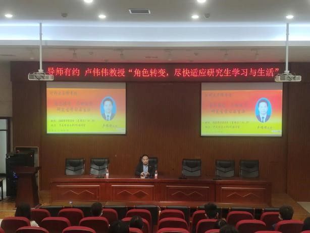 卢老师从“学习”、“生活”、“人际交往”等几个方面,向同学们说明了研究生与本科生学习工作上的区别。卢老师指出,学习上,要摒弃本科阶段的被动式学习,要主动求知;生活上,要转变本科宽松的生活方式,快速投入到研究生的科研中;人际交往方面,要与导师建立良好的师生关系,与同门师兄师姐师弟师妹建立良好的合作关系。