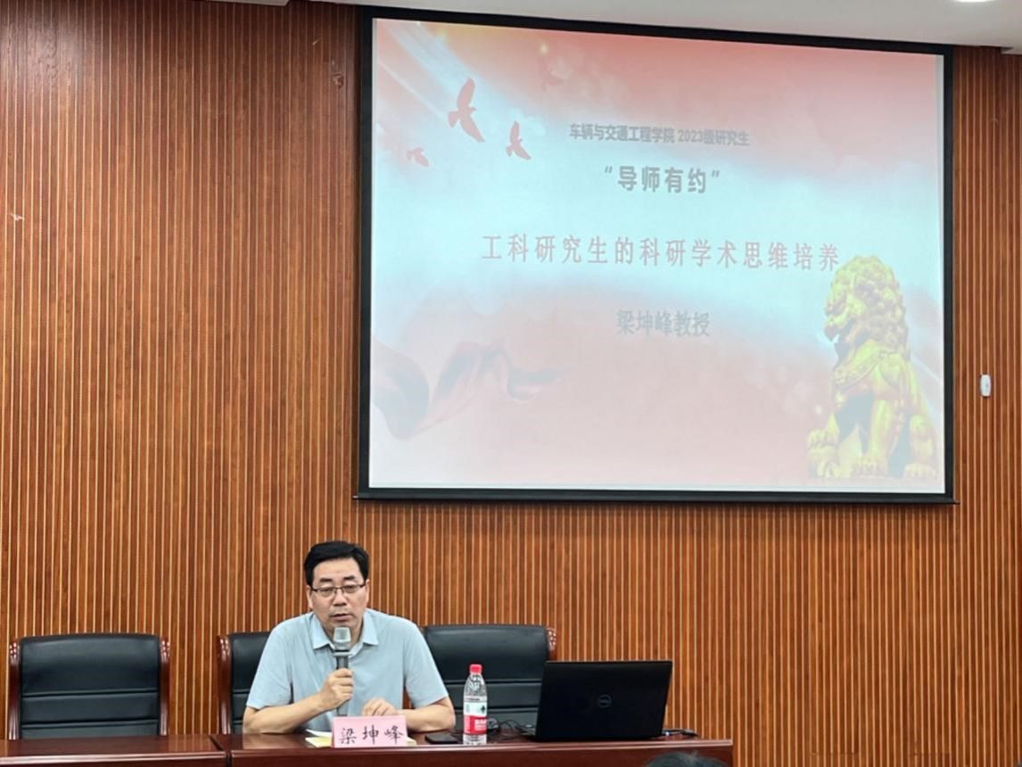 9月9日下午,由党委研究生工作部/研究生院主办、车辆与交通工程学院承办的“导师有约”在西苑校区6号楼101会议室成功举办。研究生导师梁坤峰教授与研究生面对面畅谈“工科研究生的科研学术思维培养”,车辆学院2023级全体研究生参加。活动由研究生辅导员郑景阳主持。