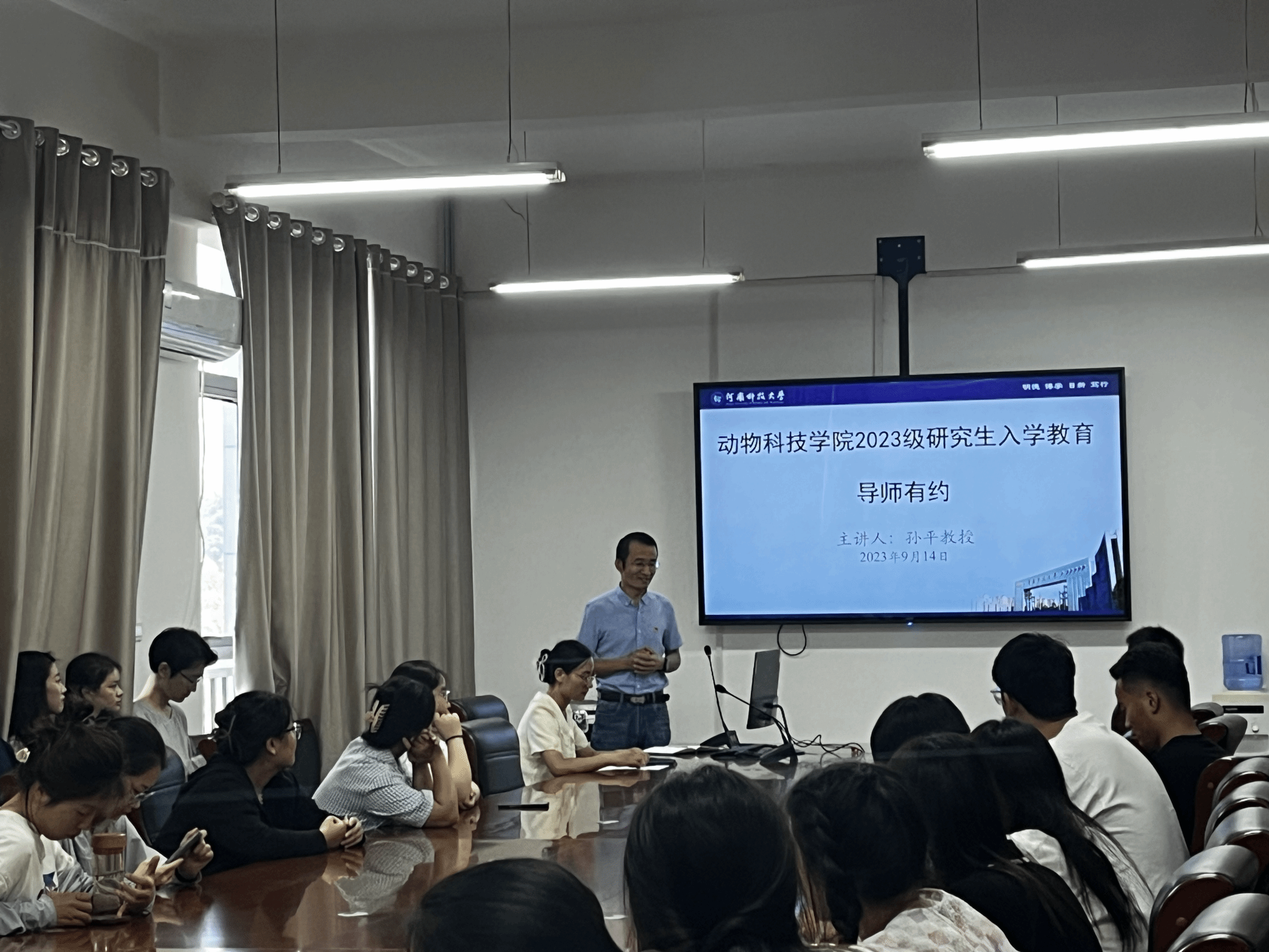 9月14日下午,由党委研究生工作部/研究生院主办,动物科技学院承办的“导师有约”在农科2号楼336会议室顺利举行。此次活动由动物科技学院孙平教授主讲,冯莎莎老师主持本次活动,动物科技学院2023级全体研究生参加。