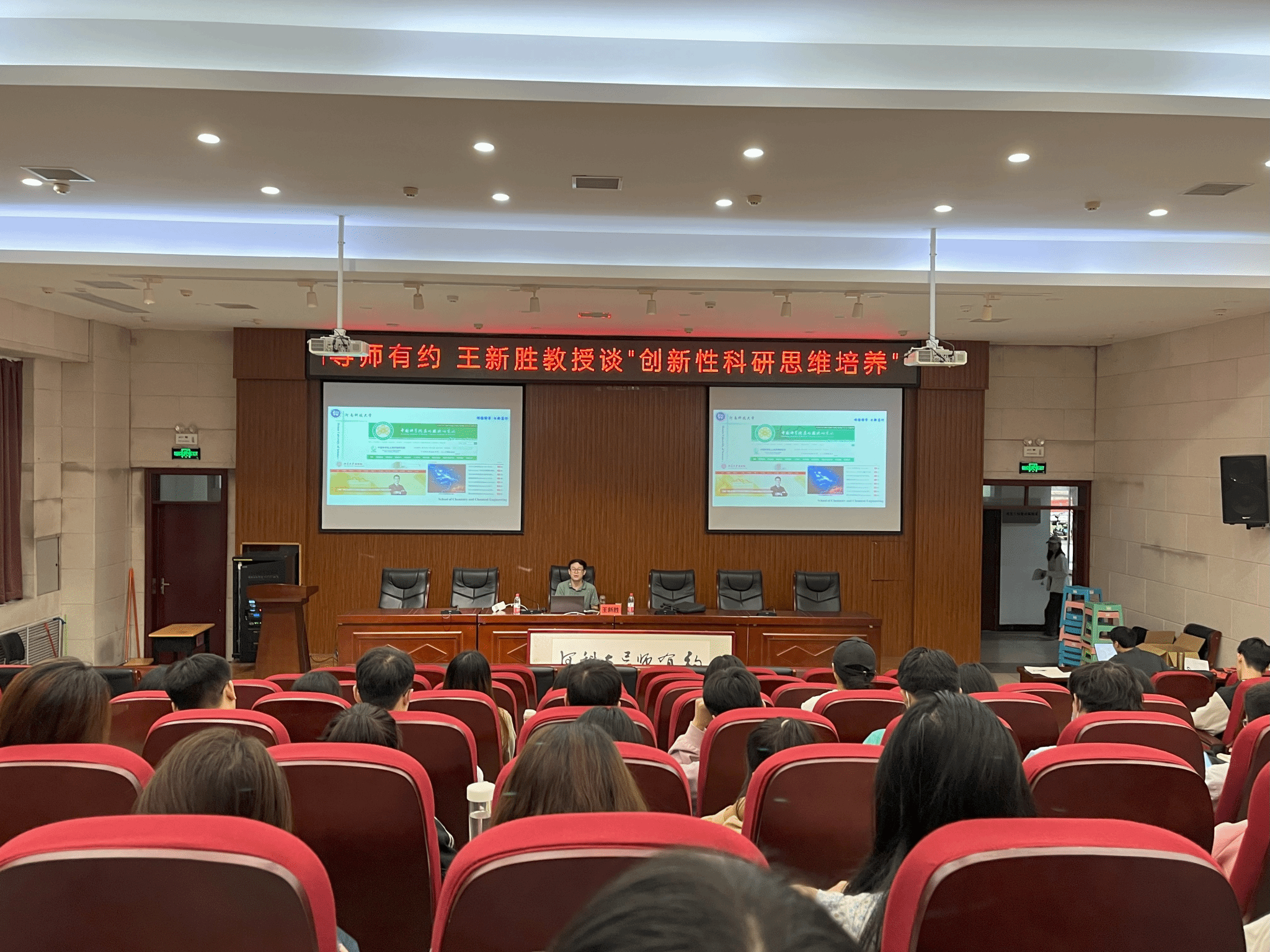 王新胜教授从“文献调研”、“组会交流学习”、“实验操作技术”等方面,就同学们如何在日常科研生活中培养创新型科研思维进行了深入交流。王新胜教授指出,文献调研是研究生培养思维的第一步,要摒弃本科阶段的被动式学习,要主动查阅文献;通过课题组组会与导师、师兄和师姐们交流学习是最关键的途径,要与导师建立良好的师生关系,与师兄、师姐、师弟、师妹们建立良好的合作关系;最后,王老师指出,在日常的实验中,我们也要在每一步操作中总结分析,形成一个完整的科研思维体系。对于如何培养创新性科研思维,王老师指出研究生要做到主动学习,培养创新能力,从基础的文献调研到关键的实验操作,每一步都要学会总结分析,养成科学的思维体系。