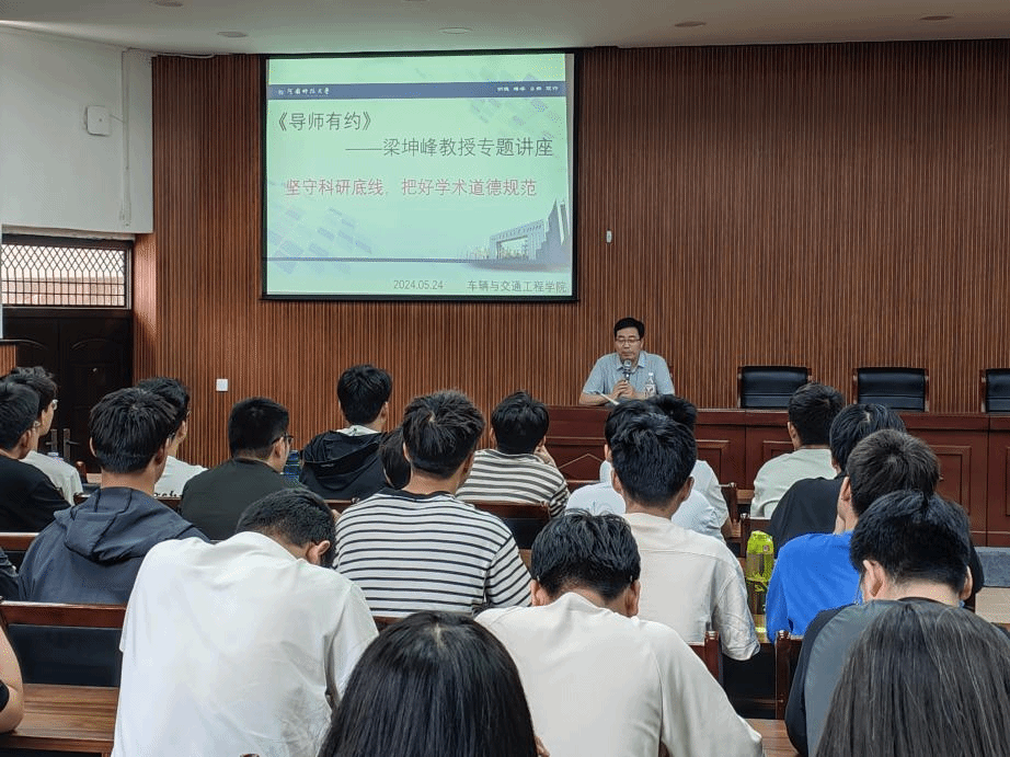 为了加强科研诚信建设,提高研究生的学术道德水平,推动科研工作的健康发展,5月24日下午,由党委研究生工作部主办、车辆与交通工程学院承办的第140期《导师有约》在西苑校区6号楼101会议室举办。本次活动邀请车辆学院博士生导师梁坤峰教授为我校研究生作题为“坚守科研底线,把好学术道德规范”的专题讲座,全校研究生代表参加讲座。讲座由车辆学院研究生会副主席侯家兴主持。