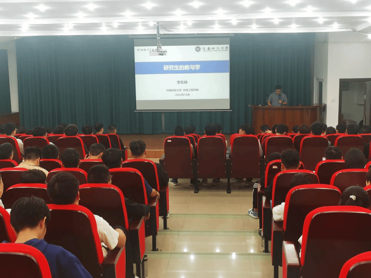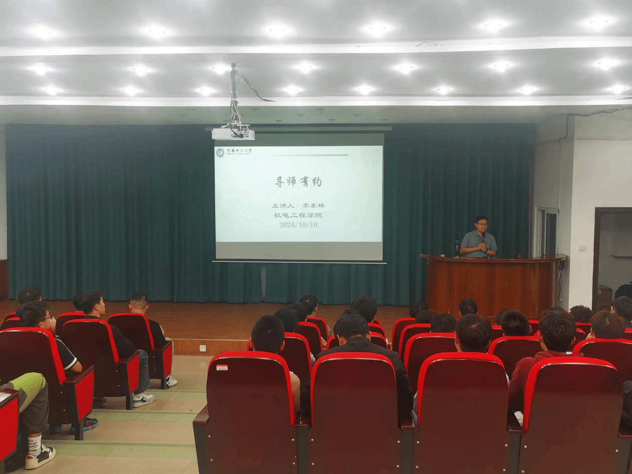 2024年10月10日下午,由党委研究生工作部/研究生院主办,机电工程学院承办的“导师有约”在西苑校区南九学术报告厅顺利举行。机电工程学院硕士生导师李东林副教授与研究生面对面就“研究生的教与学”进行了深入探讨与交流。本次活动由研究生辅导员袁梦如主持,2024级全体研究生参加。