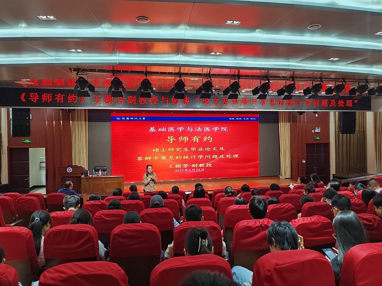 本次活动聚焦“硕士研究生毕业论文及答辩中常见的统计学问题及处理”,特邀硕士生导师、统计学专家王颖芳副教授担任主讲嘉宾,为2022级至2024级医学专业研究生带来了一场兼具学术深度与实践指导的专题讲座。活动通过剖析毕业论文写作中的典型统计误区、演示软件操作技巧,并结合真实答辩案例,助力研究生提升科研数据分析能力,为高质量完成学位论文保驾护航。