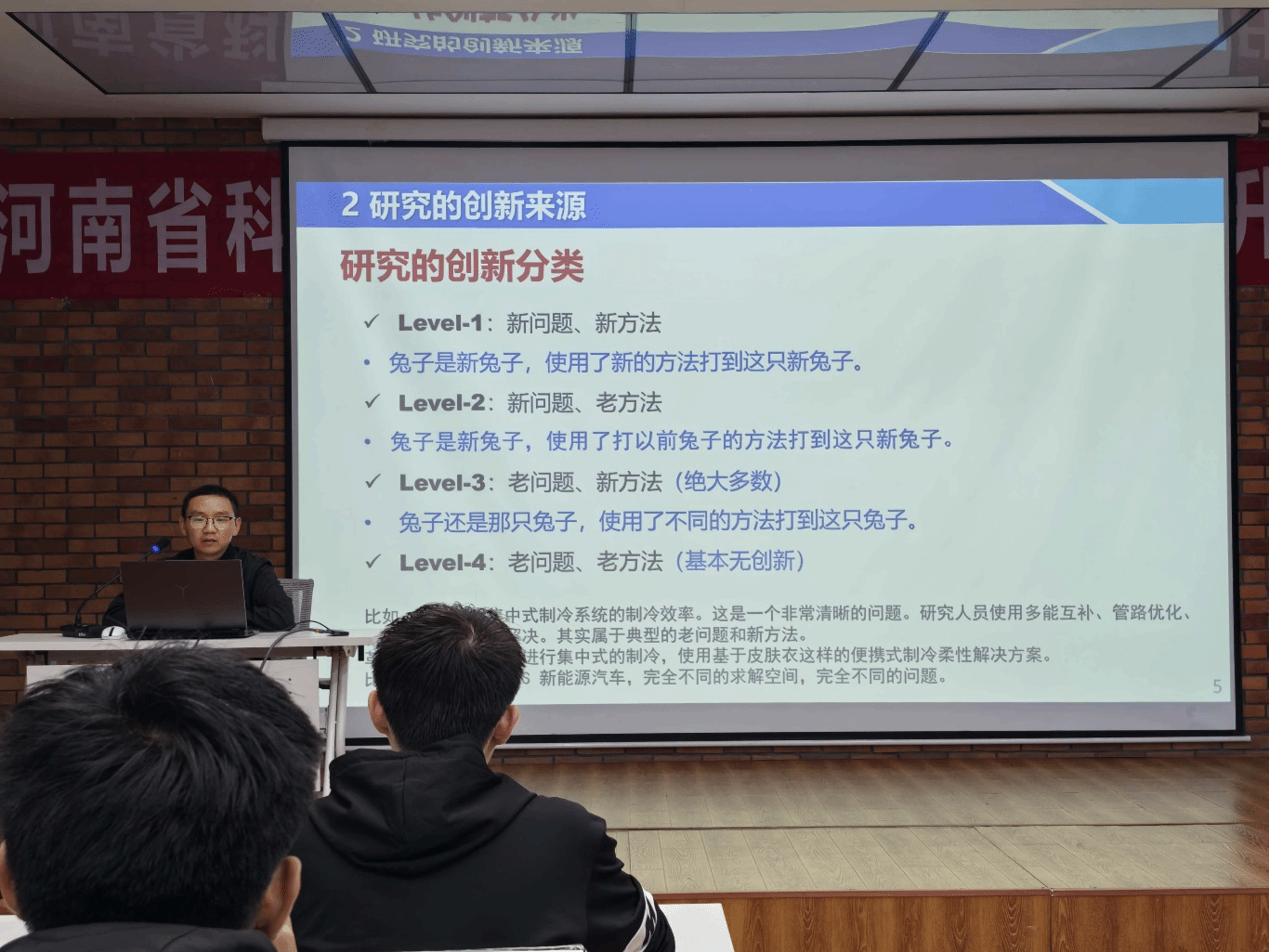 第二,问题导向,勇于创新。王占伟教授鼓励同学们要培养敏锐的“问题意识”,善于从工程实践和理论缝隙中寻找真问题。他提出,“创新”并非遥不可及,它可能源于对传统方法的改进,或是对交叉学科知识的融合应用。
