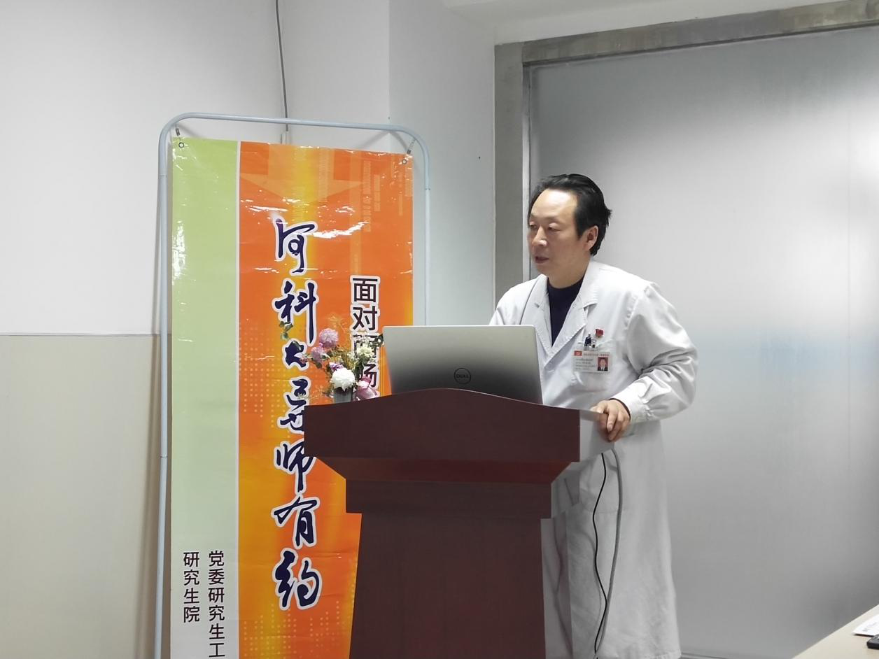张英剑教授分享了自己的成长和学习科研经历,就“科学精神、科研态度、科研方法”等几方面同与会研究生进行深入交流。他表示,科学不等于正确,科学的确定性是相对的,不确定性是绝对的,告诫研究生在以后的科研生涯中要具备敢于质疑的科学精神。他强调,要养成严谨的科研态度,要实事求是,科研方法要与时俱进。他鼓励同学们要努力协调好临床工作、生活、情感及科研之间的关系,合理有效的安排自己的时间,做到青春无悔。
