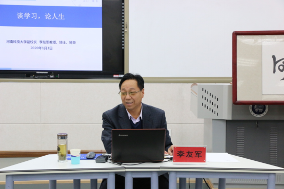 2020年1月13日下午,由河南科技大学党委研究生工作部/研究生院举办的第59期“导师有约”在开元校区农医教学楼607室举行。河南科技大学副校长、博士生导师李友军教授与通过“河南科技大学研究生”微信公众平台报名、遴选出的40余名博士生、硕士生面对面畅聊“谈学习 论人生”。研究生工作部部长王晓梅教授参加活动。活动由农学院2018级研究生李明月主持。