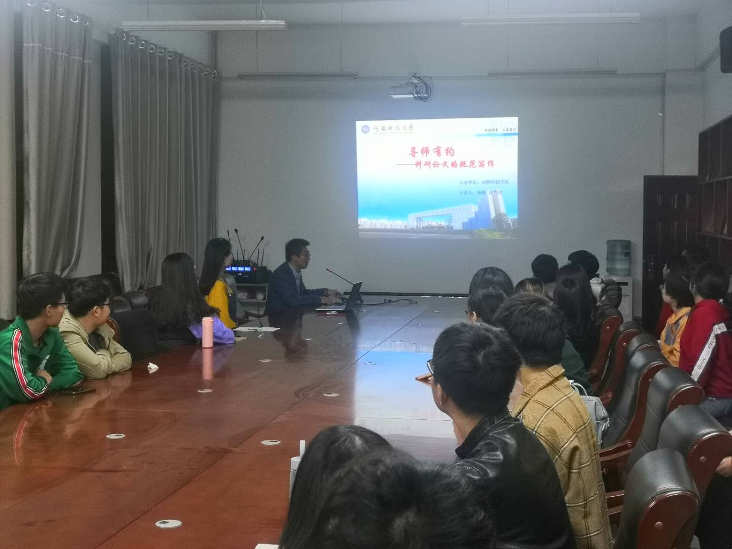 2020年10月22日下午,由河南科技大学党委研究生工作部/研究生院主办、动物科技学院承办的第69期“导师有约”活动在农科2号楼336会议室举办。动物科技学院硕士生导师杨帆副教授以“科技论文,规范写作”为主题与大家进行了深入的探讨和交流。此次活动由动物科技学院副院长刘玉梅老师主持。
