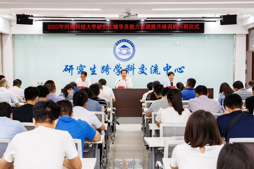 根据《河南科技大学“大学习大培训大练兵大提升”活动实施方案》的部署安排和“能力作风建设年”活动相关要求,为了进一步提升研究生教育管理工作人员的履职尽责能力和岗位综合素质,2022年河南科技大学研究生辅导员能力素质提升培训班开班仪式于6月9日上午在研究生跨学科交流中心举行。校长孔留安出席开班仪式,党委组织部、党委研究生工作部/研究生院、校长办公室、各培养单位相关负责人及全体研究生辅导员参加仪式。仪式由研究生院院长霍华主持。