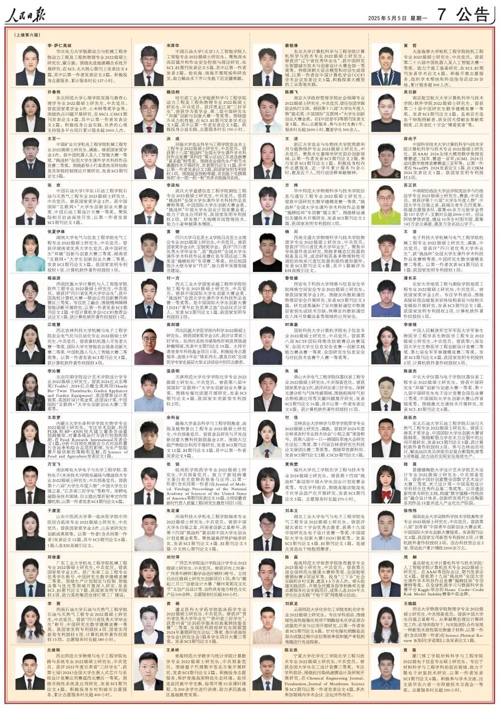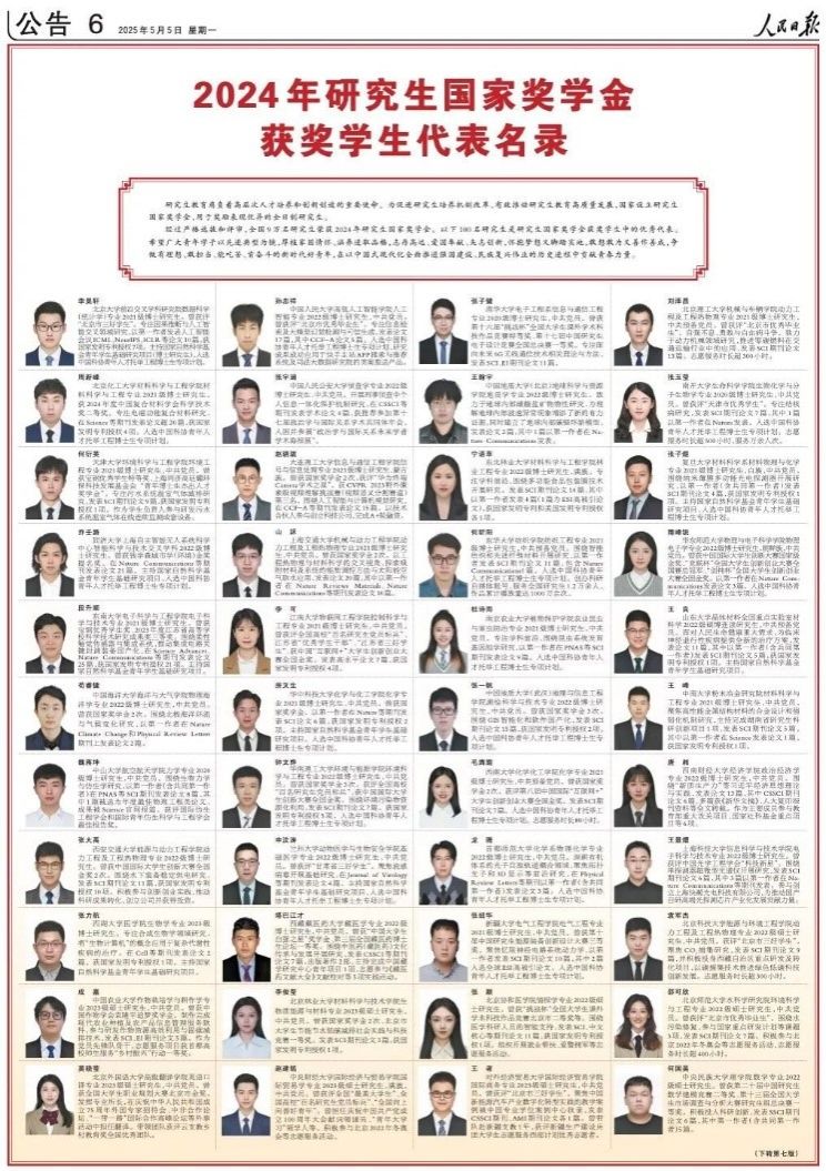近日,《人民日报》专版发布2024年国家奖学金获奖学生代表名录,全国共遴选出200名优秀学子(研究生、本专科生各100名)作为典范。河南科技大学机电工程学院2022级轴承专业硕士研究生朱定康,以卓越的科研素养与综合表现荣登榜单,成为全国研究生获奖代表中唯一入选的河南省研究生代表,彰显了我校研究生培养的卓越成果。