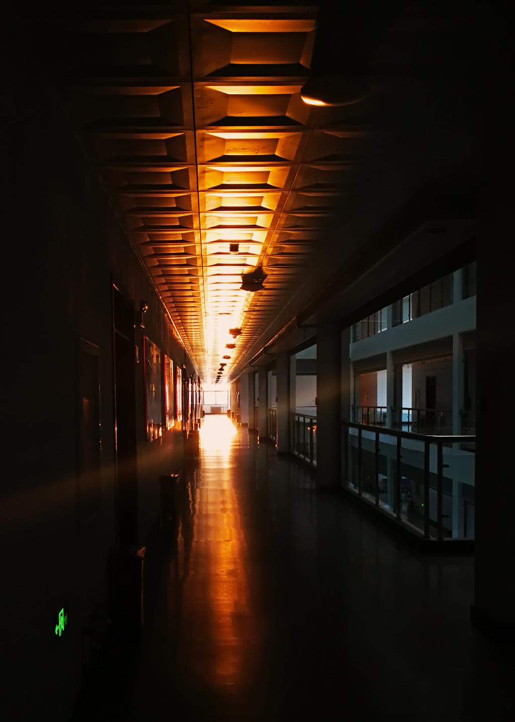 秋日的黄昏,在下课的路上,偶然发现楼道里射进来一束光芒,原来昏暗的楼道突然变得温暖而神秘。