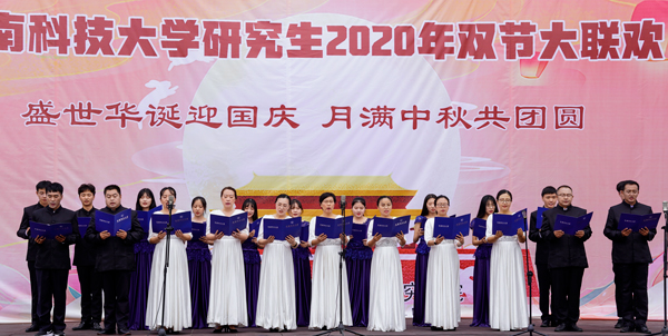 10月1日下午,我校研究生“盛世华诞迎国庆月满中秋共团圆”双节大联欢活动在开元校区下沉广场举行。校党委副书记李漪出席活动,党委研究生工作部、研究生院及各研究生培养单位老师代表,以及2020级研究生共同观看了演出。