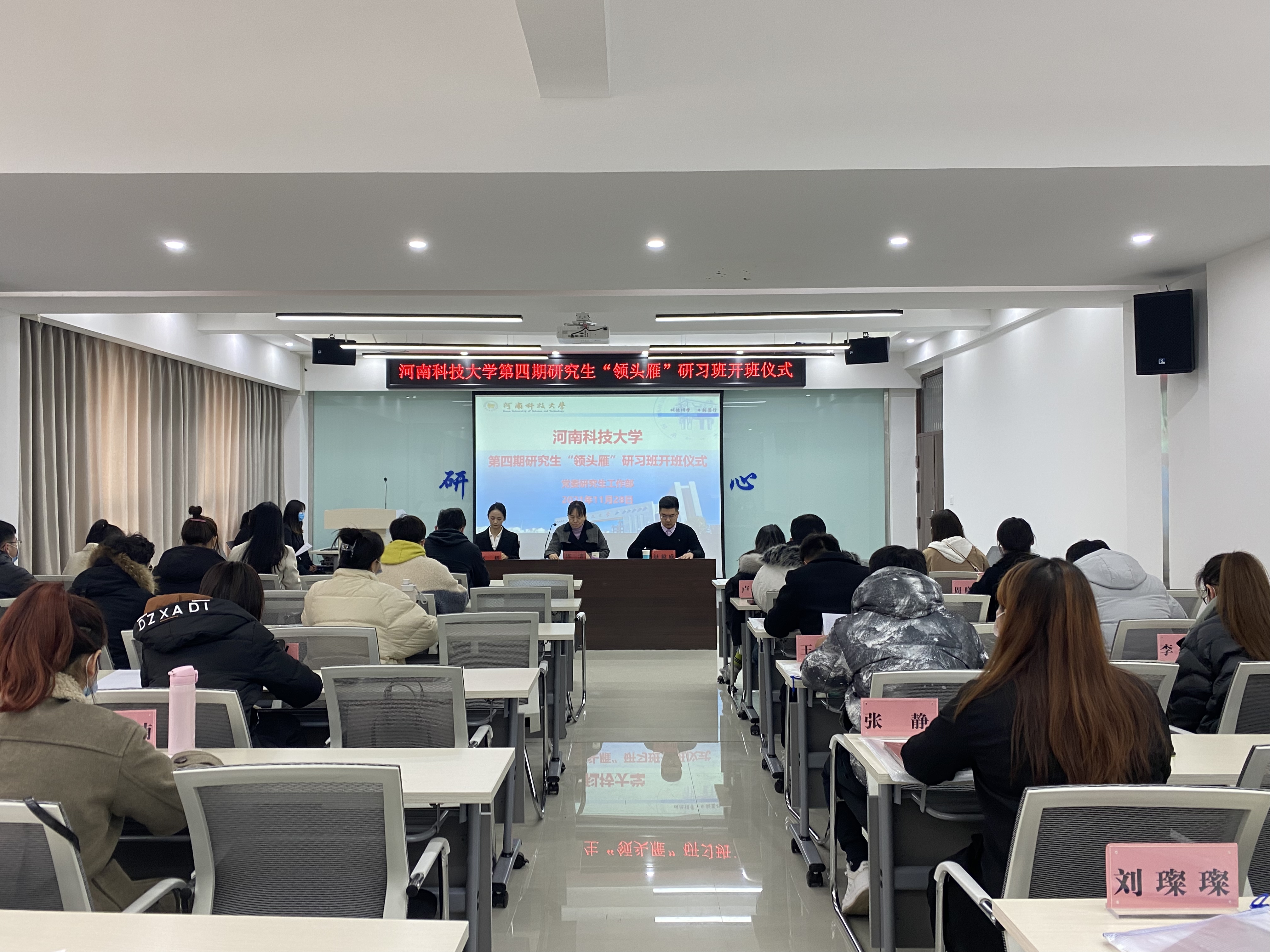 11月28日上午,由党委研究生工作部主办的河南科技大学第四期研究生“领头雁”研习班开班仪式在开元校区跨学科交流中心举行。参加仪式的有党委研究生工作部思政教育科科长陈洁老师、“领头雁”研习班助教赵耀、“领头雁”研习班班长赵毅威和第四期研究生“领头雁”研习班学员。