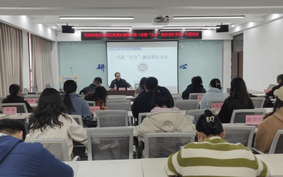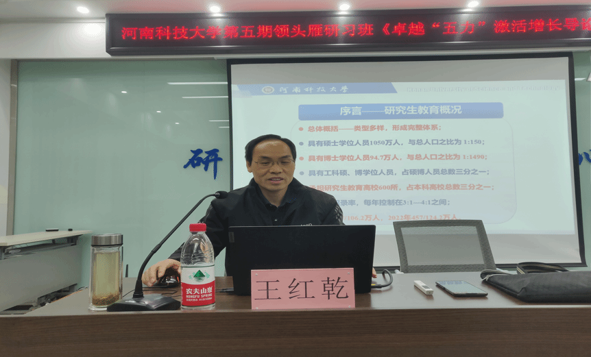 2023年3月25日上午,河南科技大学河洛书院党委书记王红乾在跨学科交流中心,为第五期研究生“领头雁”研习班学员做《卓越“五力”激活增长导论》专题讲座。讲座由医学技术与工程学院21级研究生于琬晴主持。