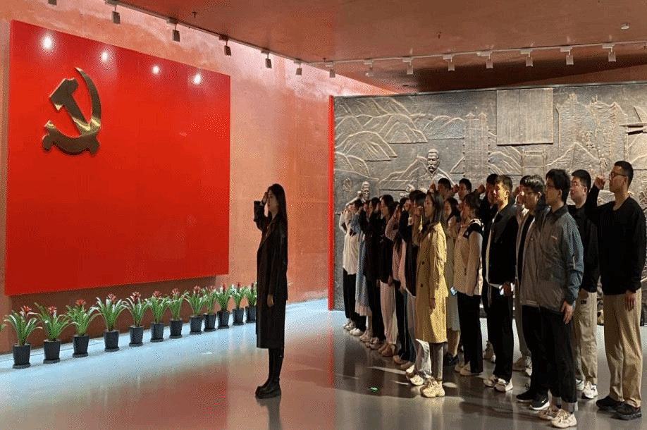 在讲解员的解说和引领下,学员们对河南省第一个党组织——中共洛阳组的诞生历程及我国著名的工人运动领袖、“中共洛阳组”早期创建人游天洋的生平事迹进行了深入了解。通过纪念馆内展示的文字、图片、文物资料等,学员们深切地感受到革命战争时期老一辈革命家无私奉献、敢于牺牲的大无畏精神和艰苦奋斗的优良革命作风。在中共洛阳组纪念馆宣誓大厅,学员们整齐列队,面对鲜红的党旗庄严宣誓,用铿锵、高昂的誓词表达了对党的忠诚与热爱!