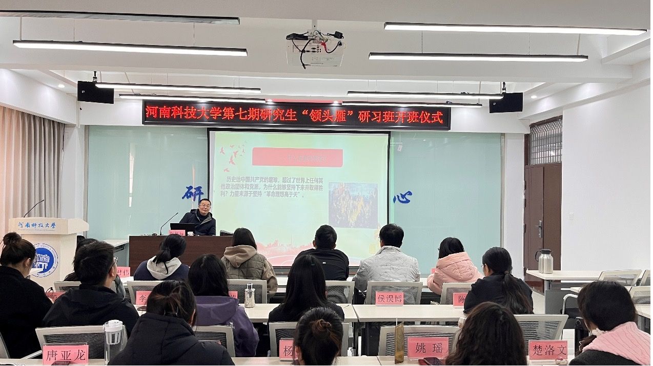 3月22日上午,第七期研究生“领头雁”研习班专题讲座《政治理论专题》于河南科技大学开元校区研究生跨学科交流中心顺利开展。主讲人为河南科技大学河洛书院院长赵祥禄,本次讲座由土木建筑学院2024级研究生徐莹莹主持。