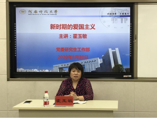 8月30日上午,马克思主义学院霍玉敏副教授为我校研究生作题为《新时期的爱国主义》的专题讲座。讲座由研工部副部长张静老师主持。