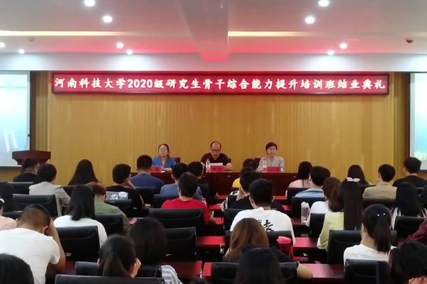 张静宣读《河南科技大学关于对研究生新生骨干培训班结业及优秀学员表彰的决定》。