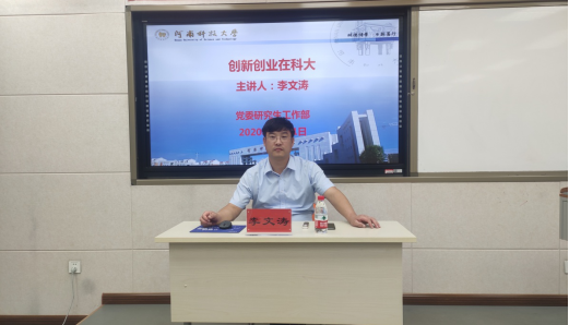 8月31日下午,党委学生工作部部长李文涛为我校研究生作题为《创新创业在科大》的专题讲座。讲座由食品与生物工程学院徐一铭同学主持。
