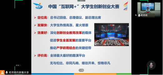 讲座开始,为了让同学们对创新创业赛事有更深刻的理解,李文涛部长播放了近三年中国“互联网+”大学生创新创业大赛全国总决赛冠军争夺的路演视频,并介绍了近年来我校在各类创新创业大赛的参赛情况和成绩。他表示,我们这个时代就是“互联网+”的时代,看到了中国创新创业的未来。随后,李文涛部长对备战“互联网+”大赛的注意事项、时间节点、优秀项目特点进行了详细地讲解,告诫同学在做创业方案时一定要显示出自身的核心竞争力和项目优势。他强调,在参加创新创业赛事时,要对创新创业赛制和章程有深入的了解,参赛项目要做到实事求是、精益求精。最后,他对中国“互联网+”大学生创新创业大赛的竞赛规则、参赛价值以及竞赛意义进行了系统全面地讲授,鼓励同学们积极参加到创新创业竞赛中去,并对同学们提出了“要做敢闯、敢做、敢为的人,为实现中华民族伟大复兴的中国梦贡献青春力量” 的殷切期望。