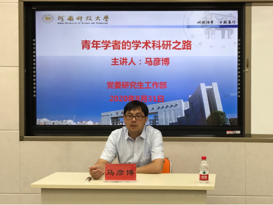 8月31日上午,河南科技大学特聘教授、动物科技学院马彦博教授应邀在腾讯会议线上直播,为我校2020级研究生新生骨干作题为《青年学者的学术科研之路》专题讲座,讲座由2019级艺术与设计学院研究生王仕栋主持。