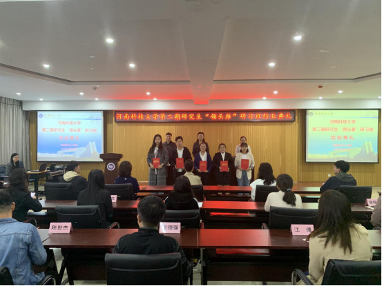 10月14日下午,河南科技大学第二期研究生“领头雁”研习班结业仪式在开元校区工科1号楼5059报告厅举行。党委研究生工作部部长王晓梅、副部长张静、“领头雁”研习班全体学员参加,结业仪式由研究生教育管理科科长陈建峰主持。