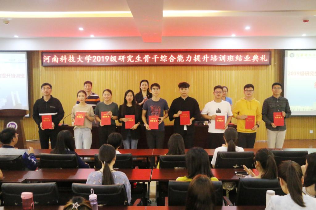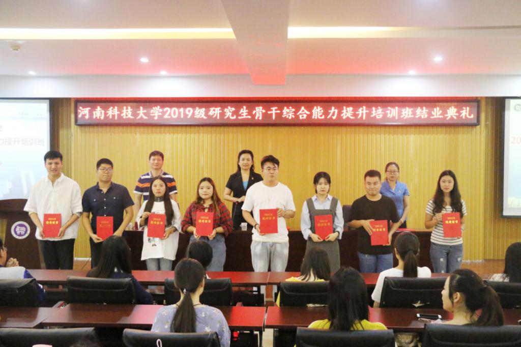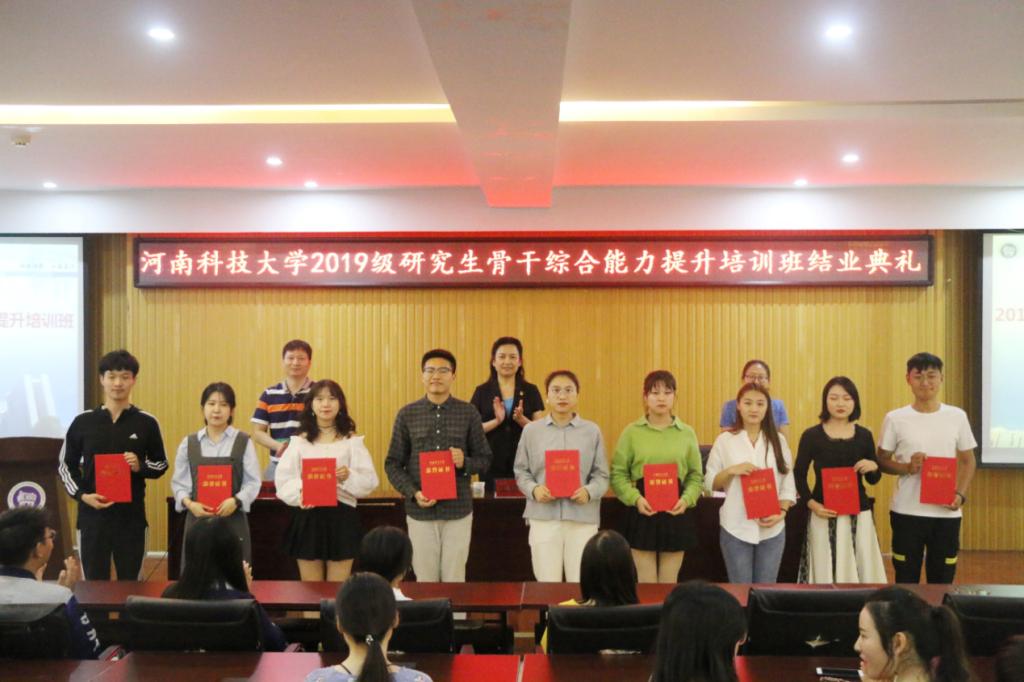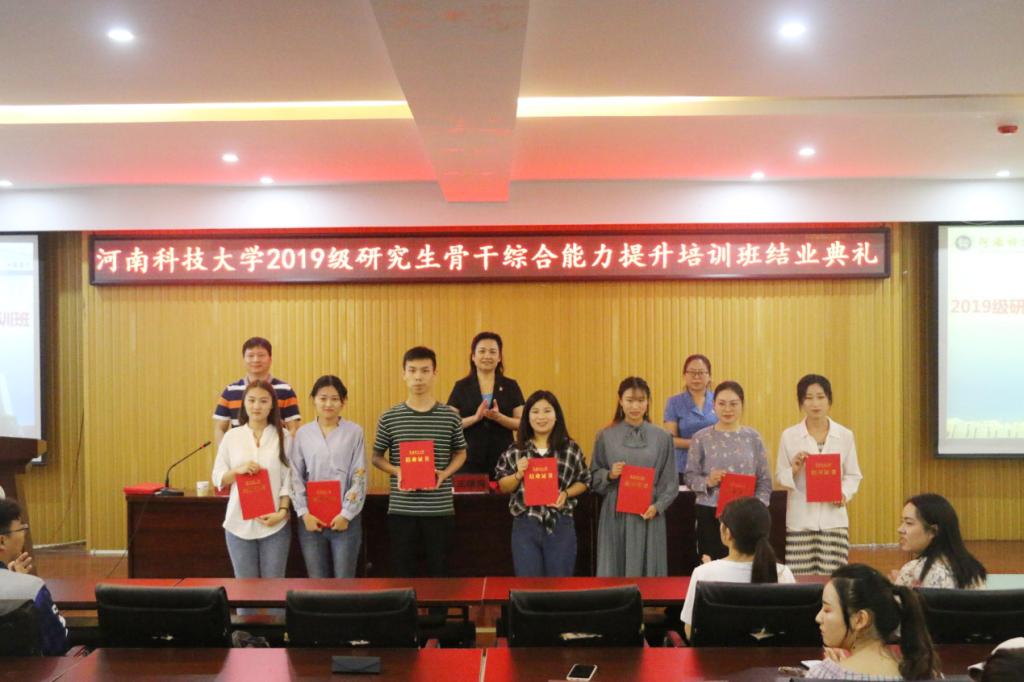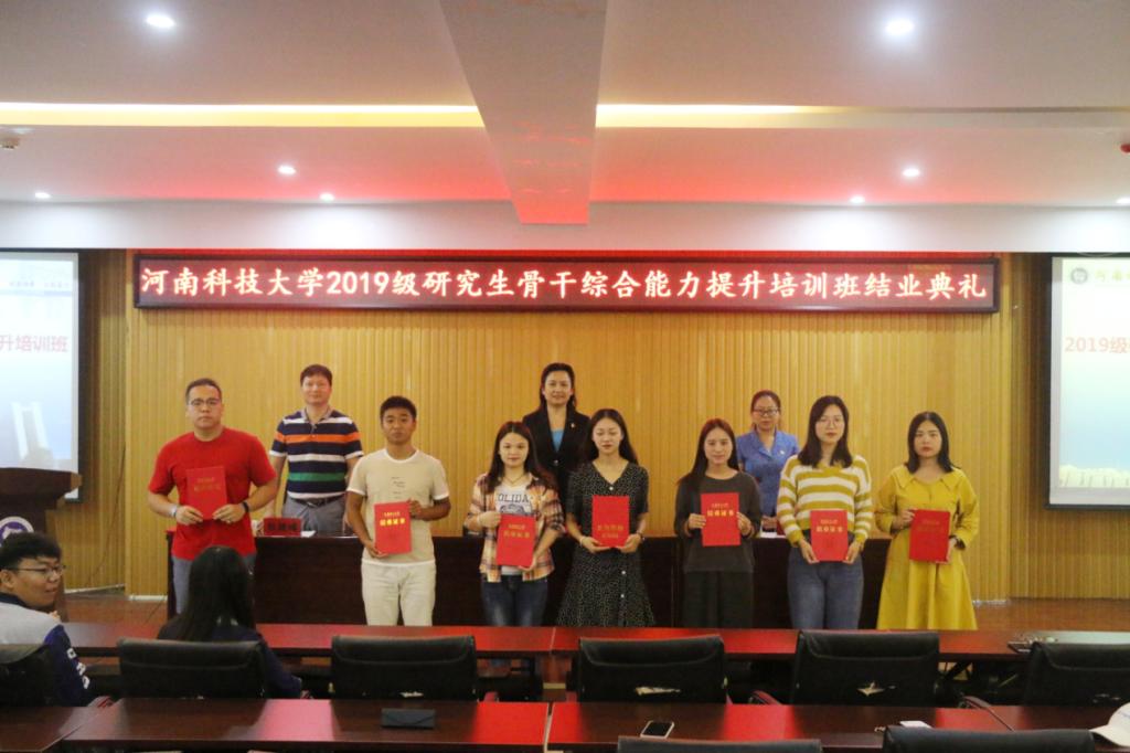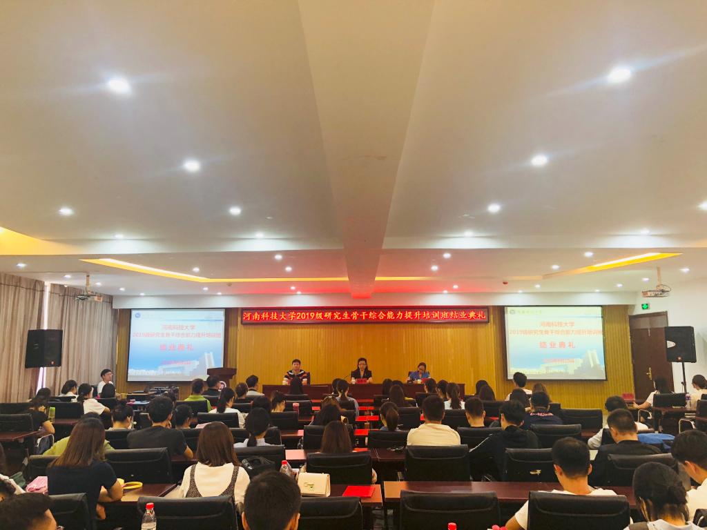 9月29日下午,河南科技大学党委研究生工作部在开元校区工科1号楼5059室报告厅举办2019级研究生骨干综合能力提升培训班结业典礼。党委研究生工作部部长王晓梅教授、研究生教育管理科科长陈建峰、2019级研究生骨干培训班全体成员等参加,结业典礼由研工部副部长张静主持。