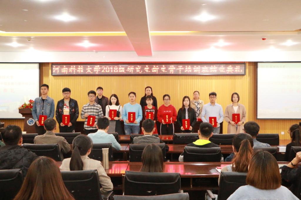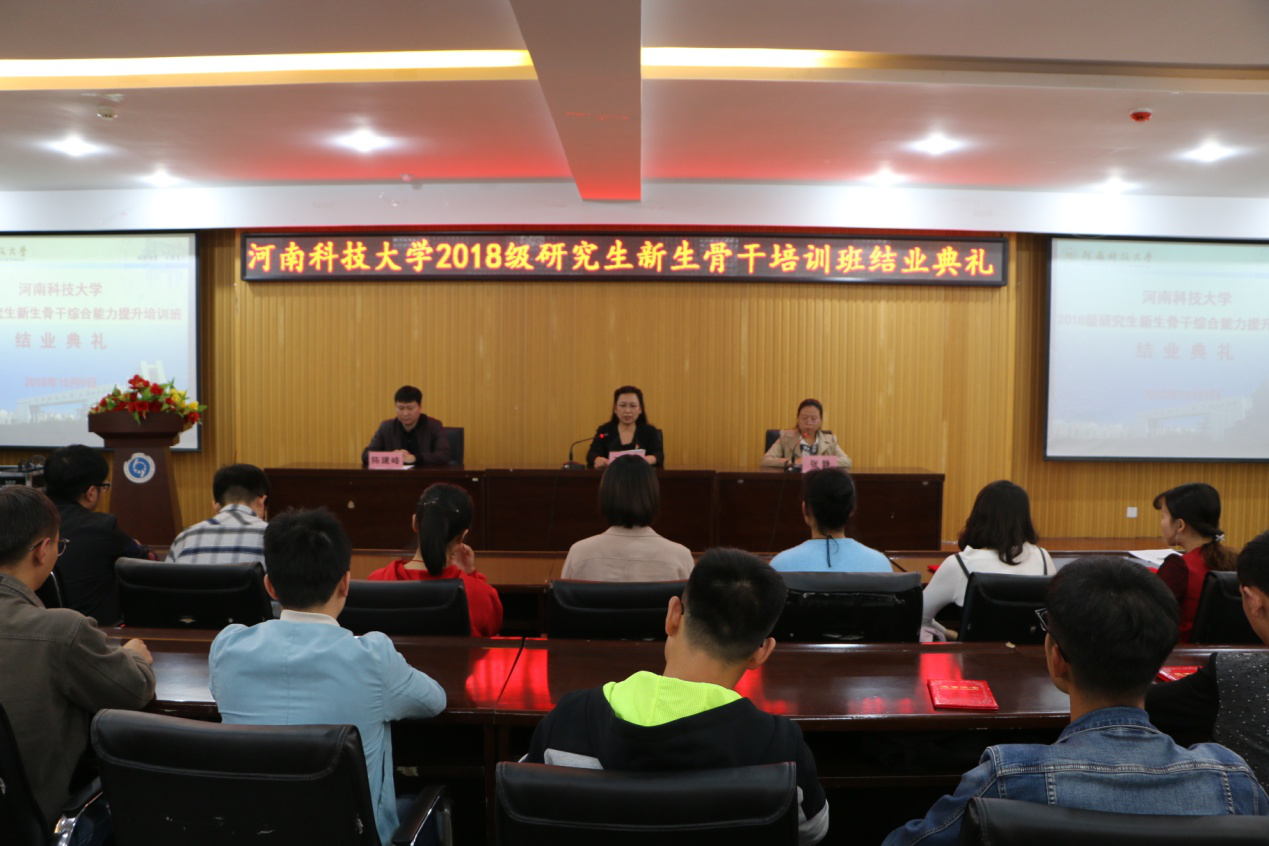 10月10日下午,我校2018级研究生新生骨干综合能力提升培训班结业仪式在工科1号楼5059室举行。研究生工作部部长王晓梅教授、研究生教育管理科科长陈建峰及2018级研究生新生骨干培训班全体成员参加仪式。仪式由研工部副部长张静主持。