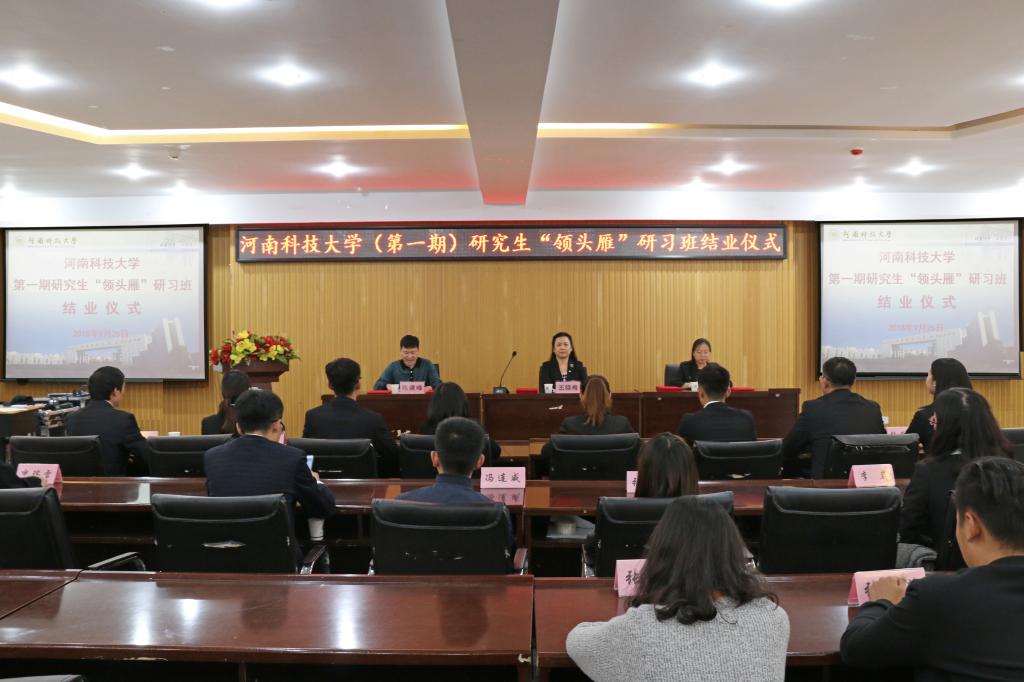 9月25日下午,河南科技大学第一期研究生“领头雁”研习班结业仪式在开元校区工科1号楼5059报告厅顺利举行。党委研究生工作部部长王晓梅教授、副部长张静、“领头雁”研习班全体学员参加。结业仪式由研究生教育管理科科长陈建峰主持。