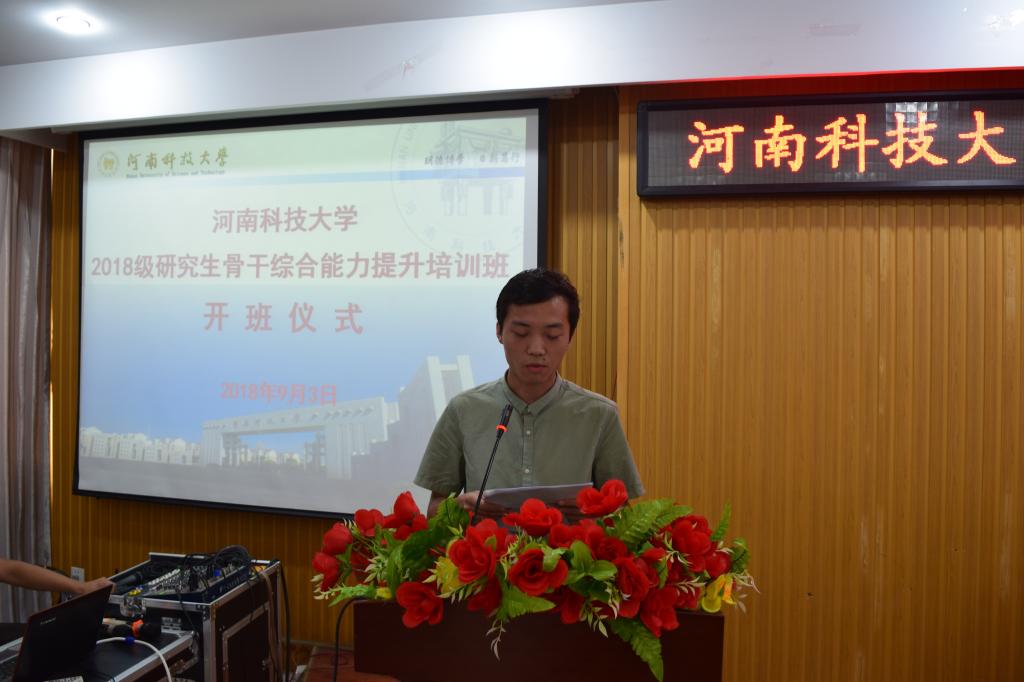 培训班班长、2016级研究生王奥运发言,号召学员们遵循明德、博学、日新、笃行的校训,努力勤奋学习。