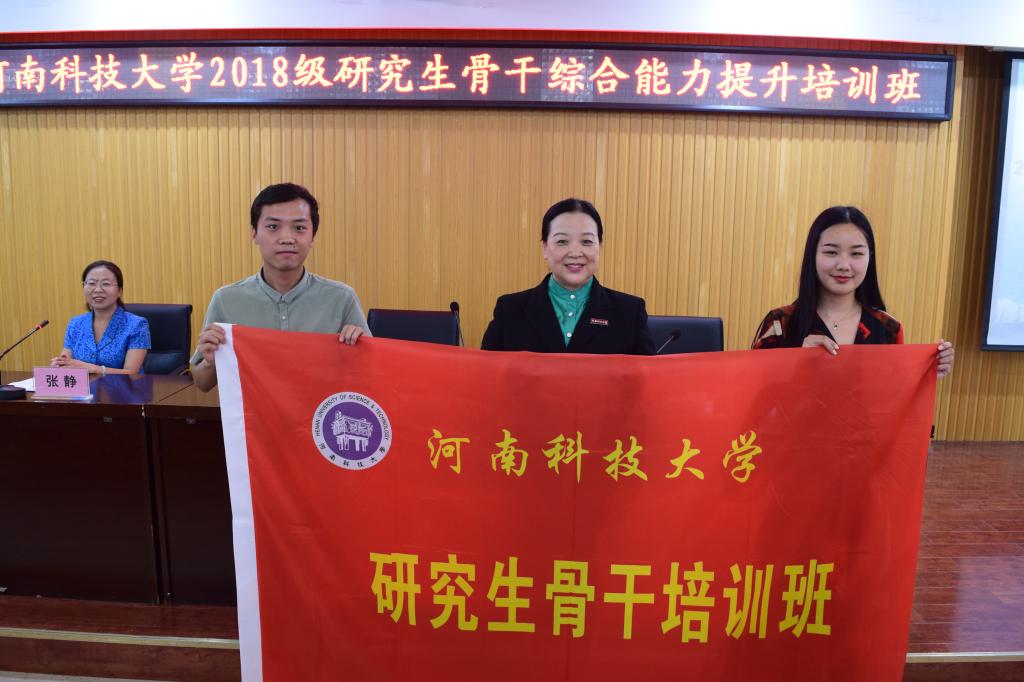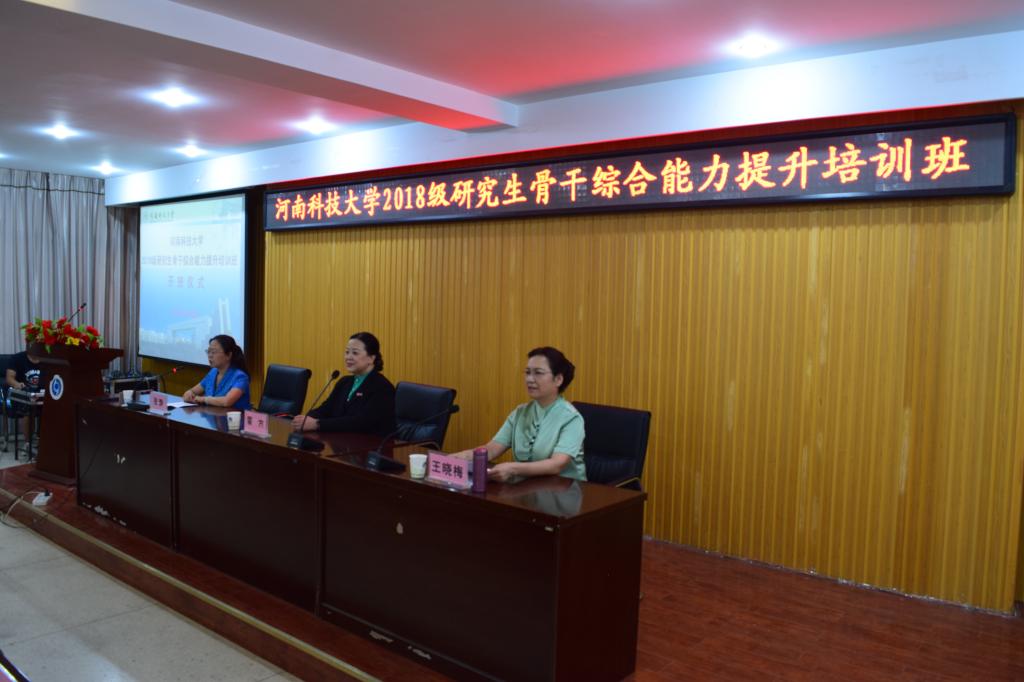 9月3日上午,河南科技大学党委研究生工作部在开元校区工科1号楼5059报告厅举行2018级研究生新生骨干综合能力提升培训班开班仪式。副校长雷方教授出席,研究生工作部部长王晓梅教授作培训安排,高年级优秀研究生代表和经选拔批准参训的100名2018级研究生新生骨干参加会议。开班仪式由研究生工作部副部长张静主持。