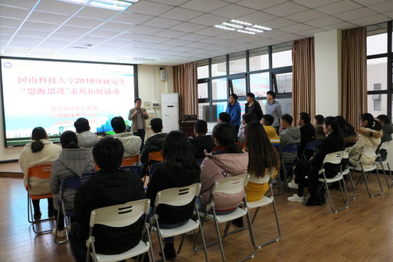12月15日下午,由党委研究生工作部、校心理健康教育中心联合举办的“集体中塑造自我,合作中拓展快乐”研究生“思源思进”团队心理素质拓展活动在校心理健康教育中心举行。研究生“思源思进”团队成员、研究生奖助服务中心成员及心理委员联合会成员参与了此次活动。活动由校心理健康教育中心王旭江老师主持。