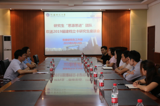 6月14日上午,河南科技大学研究生“思源思进”团队欢送2019届建档立卡研究生座谈会在开元校区工科二号楼308会议室举行。研究生工作部部长王晓梅出席会议, 2019届建档立卡研究生、“思源思进”团队各年级代表参加座谈。座谈会由研究生教育管理科科长陈建峰主持。