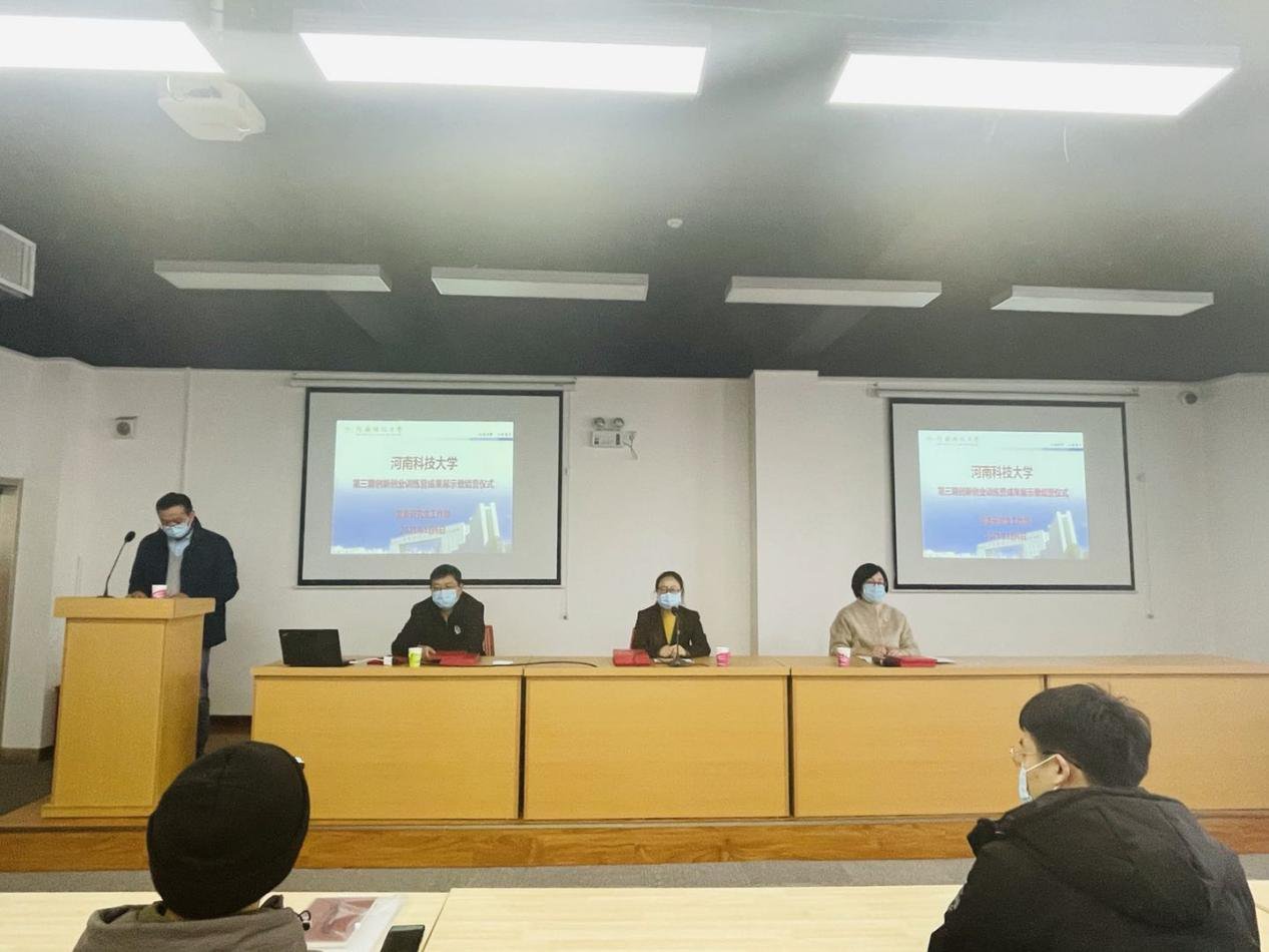 2021年1月6日,河南科技大学第三期研究生创新创业训练营在河南科技大学科技园圆满落下帷幕。党委研究生工作部副部长张静老师、河南科技大学科技园产业管理科科长买若毅、校办产业管理办公室副主任王立公,以及创新创业训练营全体学员参加模拟路演暨结营仪式。仪式由研究生管理科科长王泽远老师主持。