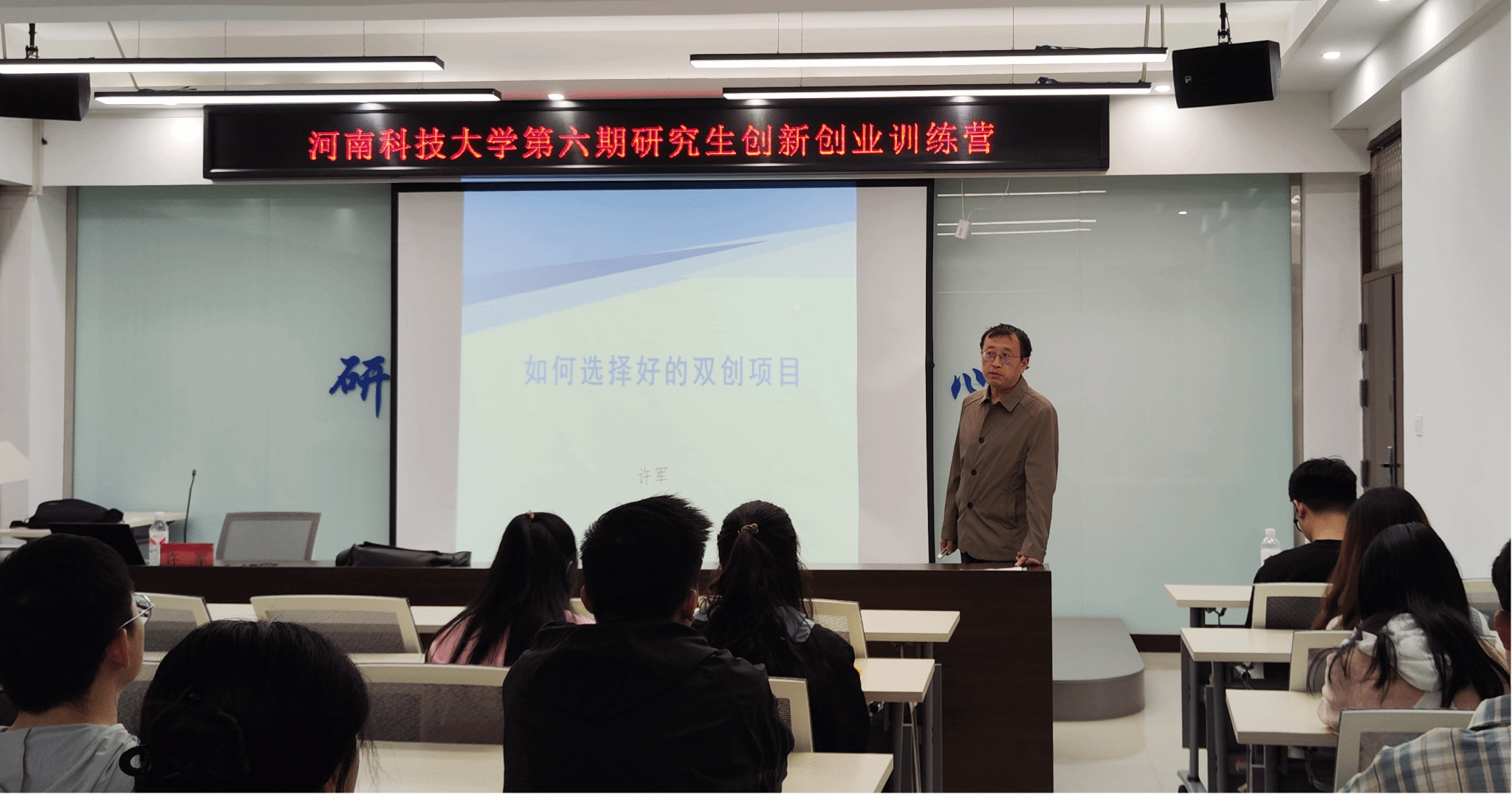 4月21日下午,商学院副教授许军老师在研究生跨学科交流中心为第六期研究生创新创业训练营学员作“如何选择好的双创项目”专题培训讲座。本次讲座由食品与生物工程学院2023级研究生杨君慧同学主持。