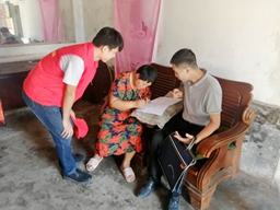 2020年8月1日,实践队在汤阴县残疾人联合会理事长王芳带领下,深入汤阴县刘黄村贫困家庭伦全希家了解扶贫帮扶情况。队员详细询问贫困户的家庭生活状况、存在的问题及困难,详细询问他们的健康状况,告诉他们在生活中遇到什么困难或身体遇到什么情况及时与扶贫工作人员联系。同时,队员对脱贫政策及文件进行详细解读,鼓励他们积极面对生活,努力克服困难。
