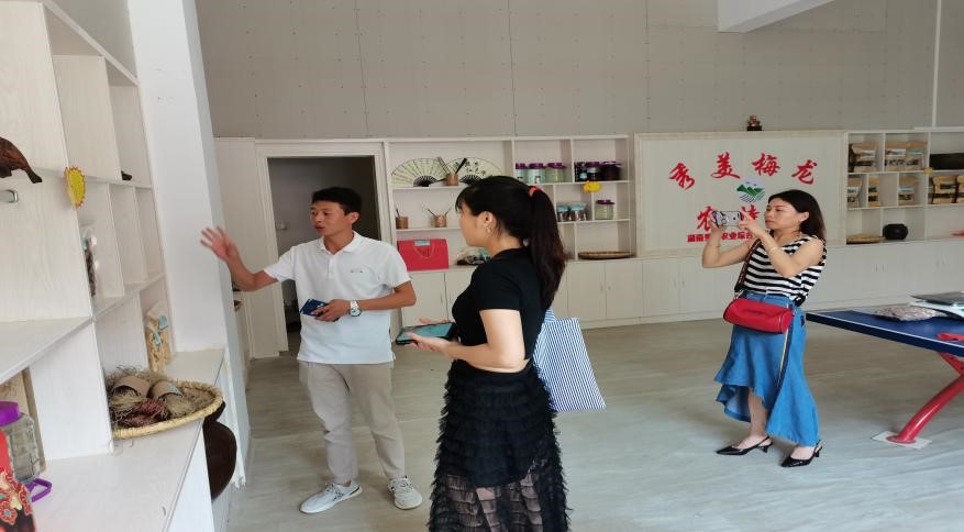 在湘乡市中沙镇梅龙村湖南秀美农业综合开发有限公司内,黄玉阳在公司创始人黄炯铸的介绍下,边听边看,了解其目前的经营管理模式和主要的农产品。其中在种植养殖方面,他通过与当地农户进行合作,签订种植、养殖协议,免费提供种籽、幼苗,提供技术培训与指导,为农民搭建平台,帮助成品往外销售,利益共享,让他们在自耕自足的生产中获得收入,助力脱贫攻坚,促进农村农业的经济发展。至今为止,他所开办的公司已经带动超过两百户家庭增加了经济收入。黄炯铸表示,这些都离不开党和政府给予像他这样青年人才的培养与帮助,他会继续保持激情与活力,为乡村振兴发展注入生机与活力。