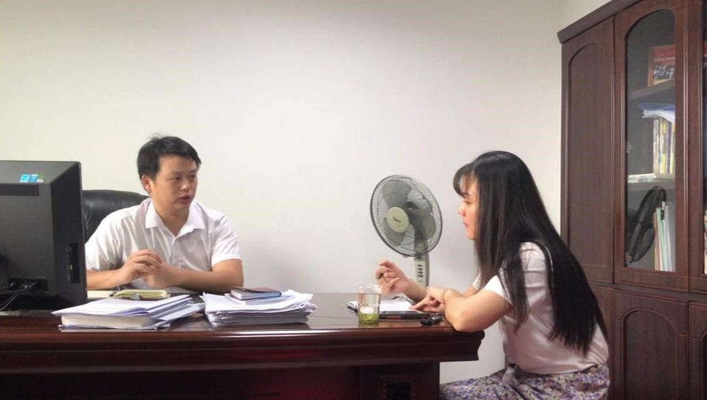 在湘乡市团市委的办公室内,黄玉阳邀请湘乡团市委谢驰书记分享他在农村基层工作的经历。2011年大学毕业的谢书记放弃繁华大城市工作的机会,通过考取“大学生村官”来到了农村工作,满怀理想与抱负,扎根农村大地,艰苦卓绝,反哺家乡热土。在工作中,他能始终坚持党的领导,本着全心全意为人民服务的宗旨,根据家乡的情况,利用自己在城市的所学所见所闻所感,讲实话、干实事,为家乡人民群众谋幸福,实实在在地为家乡建设与发展作贡献。至今,谢书记仍然心系基层与农民群众,经常下到乡镇指导工作,关心和慰问困难农民群众,千方百计地帮助他们解决工作和生活上的问题,致力于促进家乡与人民的发展。在交谈最后,谢书记鼓励广大青年学子积极参与到家乡的建设当中,为家乡不断注入新的生机与活力,同时也祝福各位青年学子能在社会的历练当中尽快地成长成才,为乡村振兴、把我国建设成为社会主义现代化强国、实现中华民族伟大复兴梦而奋斗。
