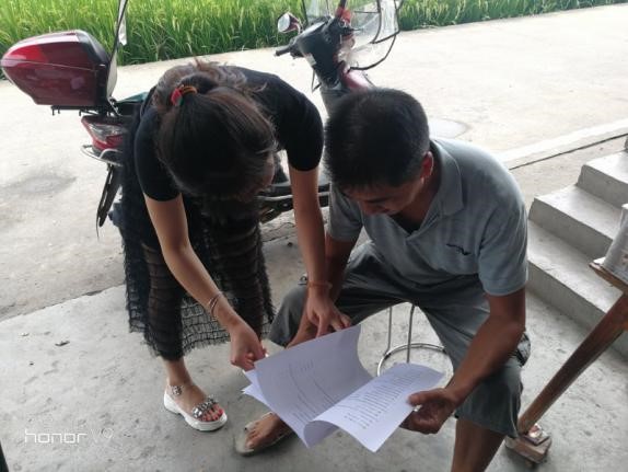 图 实践队员向村户宣传政策,开展问卷调查