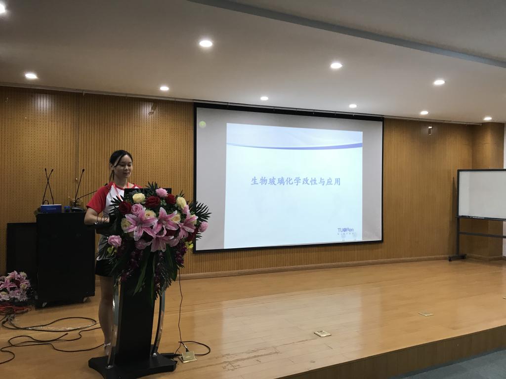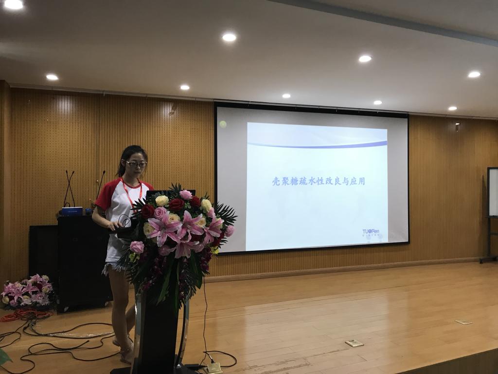 7月28日,实践团队与驼人集团开展了一场学术研讨会。会上,实践队的研究生对自己的研究方向进行了讲解。王梦娅同学讲述了壳聚糖疏水性改良与应用,张开丽同学讲述了生物玻璃化学改性与应用,宋春辉同学讲述了微流控。通过与驼人集团的高分子材料、生物医用材料、电子医疗器械等领域学术研讨,提高了队员们的创新能力,同学们进一步认识到如何理论联系实际,产品如何从实验室形成为商品的这一过程。