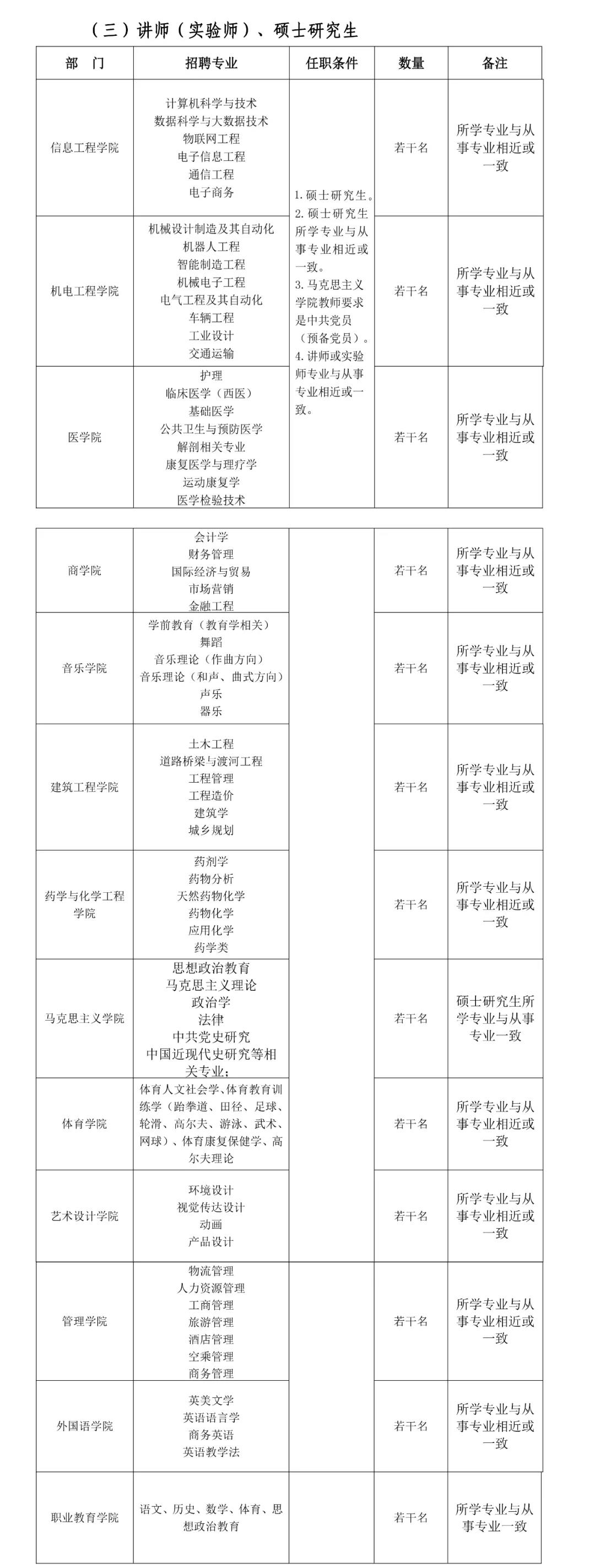 党政办公室、教务处、团委、教学质量保障处、实验设备处、学生处、就业创业处、校地合作处等部门工作人员,教育学、管理学等专业优先考虑,文字功底扎实,德才兼备。
