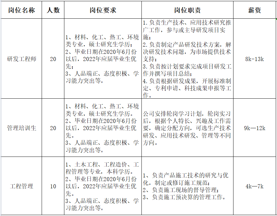 1、材料、化工、热工、环境类专业,硕士研究生学历;