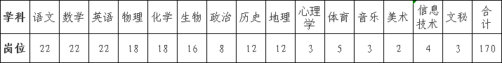 拟公开招聘高中教师170名,具体岗位及人数如下: