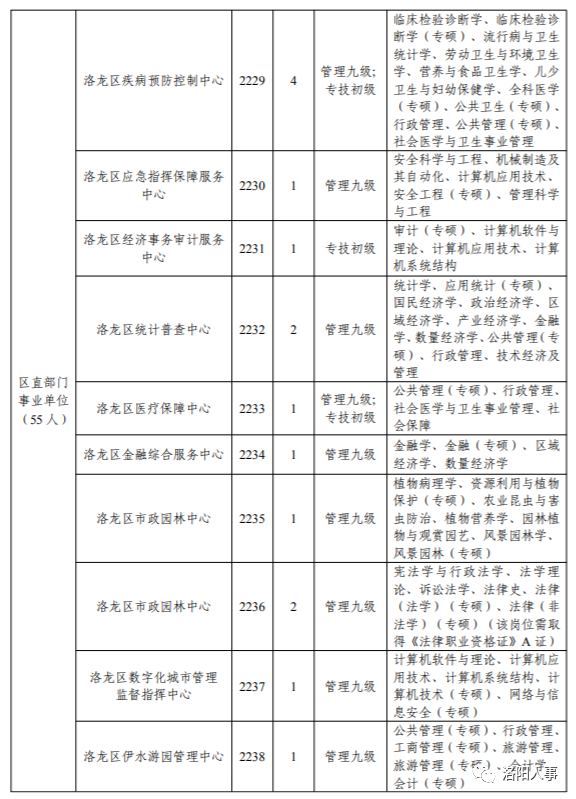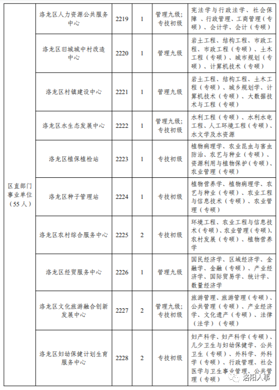 1.洛龙区机关事业单位在编在岗人员;