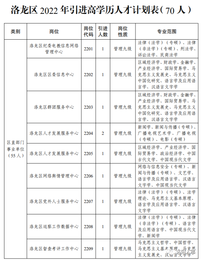 洛阳市洛龙区2022年“青骄计划”暨高学历人才引进公告