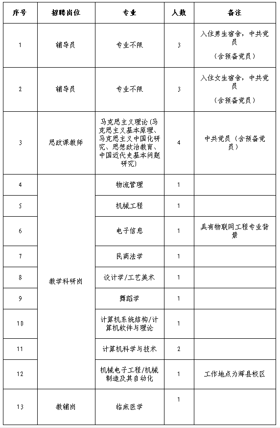 7.序号4-12号岗位,入职后须从事辅导员工作两年;