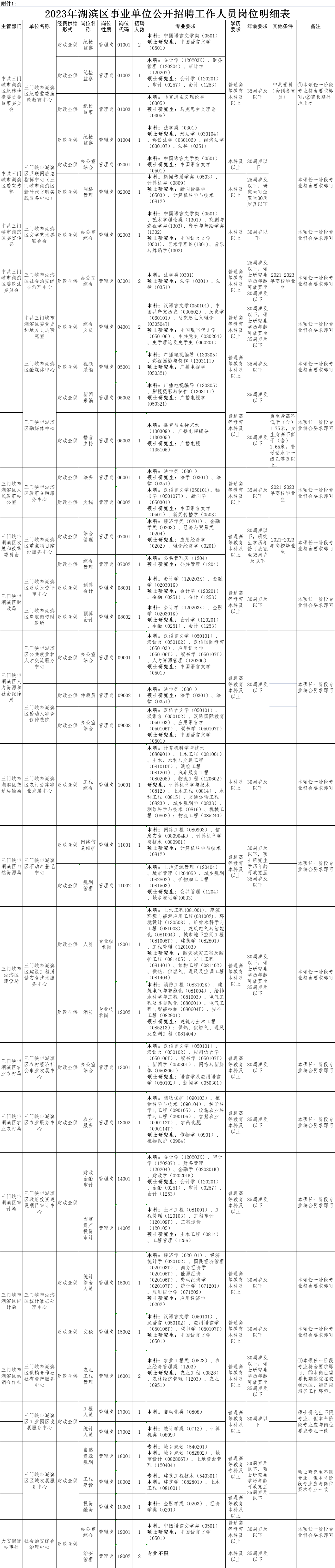 本次公开招聘岗位、人数及报考条件详见《2023年湖滨区事业单位公开招聘工作人员岗位明细表》(附件1)。